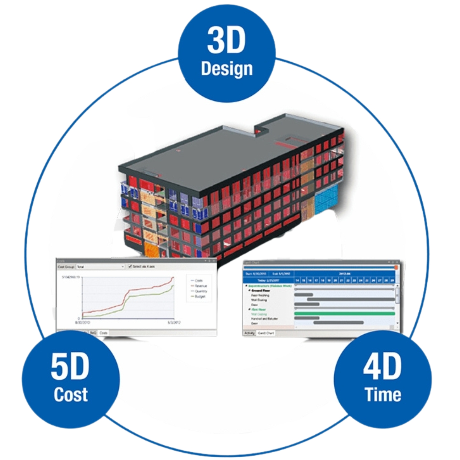Integrate time scheduling (4D) and cost data (5D) for comprehensive project management.